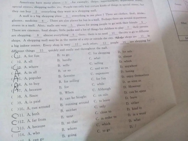 (2) 并不是所谓固定搭配一定是正确选项,完形填空是考查单词在语境中的运用。如果这个搭配或短语是不符合语篇、段落逻辑的,即便是固定说法,也是不合适的,在阅卷的时候这样的答案一定是错误的。